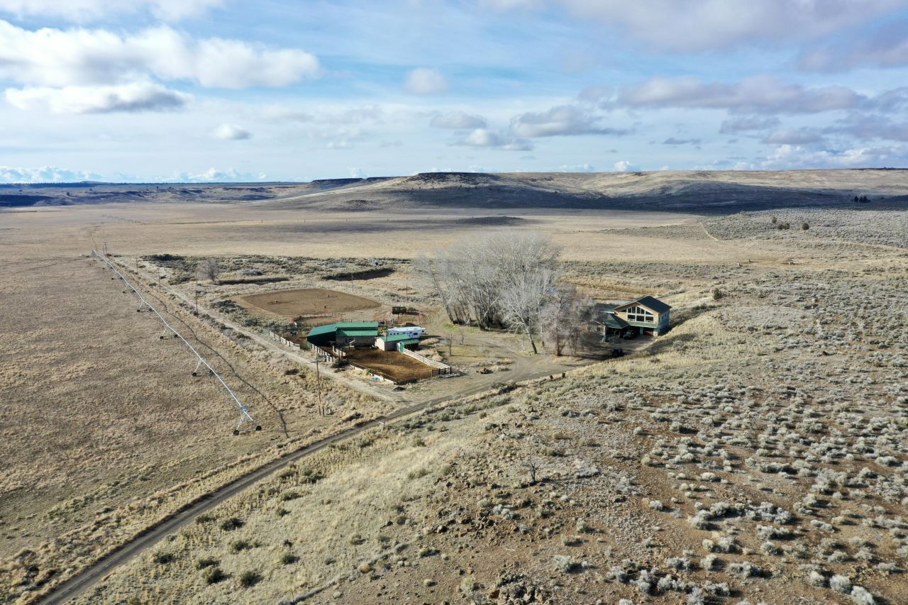 The Weaver Springs farm had historically operated as an irrigated farm producing primarily alfalfa, wheat, & mint on Lawen fine + Morganhills complex sandy loam soils. OWRD records indicate irrig. rights for approx. 826.60± ac (Priority Dates from 1951 - 2006). Irrig. infrastructure includes multiple irrig. wells, onsite reservoir, series of buried mainline, & 8-Pivots. Ranch operations are supported by 3-stock wells, working corrals, feedlot, barn, & outdoor arena area. Agricultural impr. include 2-large hay sheds (10,200± SF & 16,020± SF), shop w/lean-to, gen.-purpose bld., storage sheds, scale house + 20-ton scale, along w/perimeter & cross fencing & gravel/dirt interior roads. The property also includes a 5,009± SF stick-blt. residence w/1,044± SF att. garage, remodeled around 2017 (±40% of siding not complete). The home is situated in a private setting overlooking the onsite reservoir w/expansive surrounding views. Located just outside Burns, OR. Info pkg. available upon request.