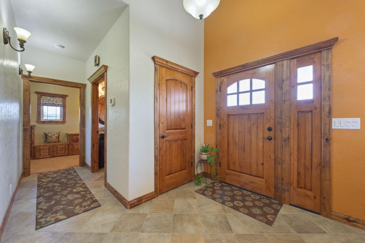Take a moment to peruse the peaceful setting of this custom home. Located in a small acreage community, on a dead-end road, surrounded by rolling green pastures and a view of Barnes Butte. Custom home completed in 2018 includes 3 primary suites, main primary includes office space, access to wrap around porch. Bathroom with double vanities, jetted soaking tub, separate shower and large walk-through closet that takes you directly to the laundry room. Extra attention to detail in all the beautiful wood finishes throughout the home including custom cabinetry; additional custom features include built-ins with lighting, doors with immense character, cabinets with outlets to charge appliances and so much more! Builder thought of all the details with half bath in the garage/workshop; foundation at edge of wrap-around porch for easy addition to floor plan, spider insulation, finished attic storage with temperature control. Separate 40x30 insulated shop, 40x16 lean-and 40 storage container.